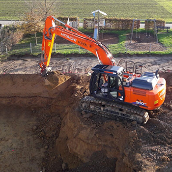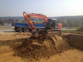 Wir verfügen über einen modernen Fuhrpark. Damit ist es uns möglich, Ihre Erdarbeiten in jeglicher Größe und Dimension durchzuführen: sei es eine Baugrube für Ihren Neubau, Gelände- oder Arbeitsraumverfüllungen oder Entwässerungsarbeiten.