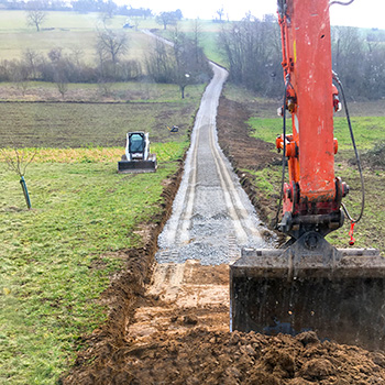 Beispielsweise für den Forstbereich und für Kommunen legen wir nach entsprechenden Vorgaben und Richtlinien Forst-, Wald- und Schotterwege an. Außerdem führen wir mit unserer speziellen Baggerausrüstung kommunale Grabenpflege und Entwässerungsarbeiten durch. Auch Schottertragschichten für den Terrassenbau gehören zu unserem Leistungsspektrum