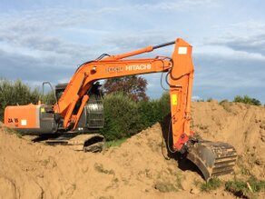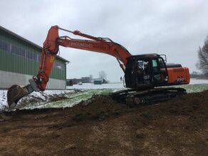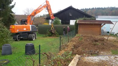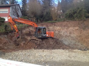 Wir baggern und planieren, graben, verfüllen und bewegen kleine oder große Erdmassen. Durch seinen Raupenantrieb ist unser Bagger das ganze Jahr über einsatzbereit und verrichtet seine Arbeit auch in schwierigem Gelände.